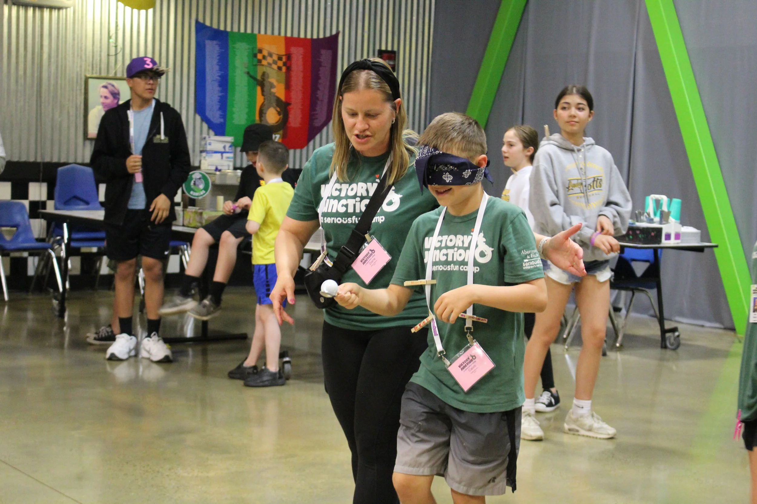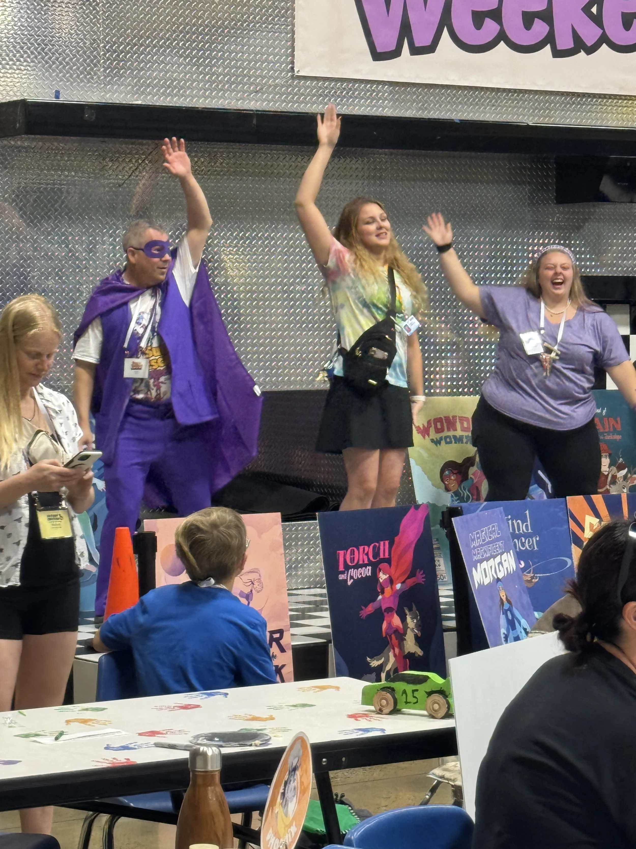 Two highlights of the camp occurred in the latter half of the weekend. Our talent show, nicknamed “Stage Night,” featured a record 18 acts, showcasing our campers and volunteers singing, dancing, performing magic, and even doing impersonations. We concluded the weekend on Sunday morning with the “Superhero Academy Group Activity” led by Victory Junction in the superdome, where campers created unique capes and inspiring masks.