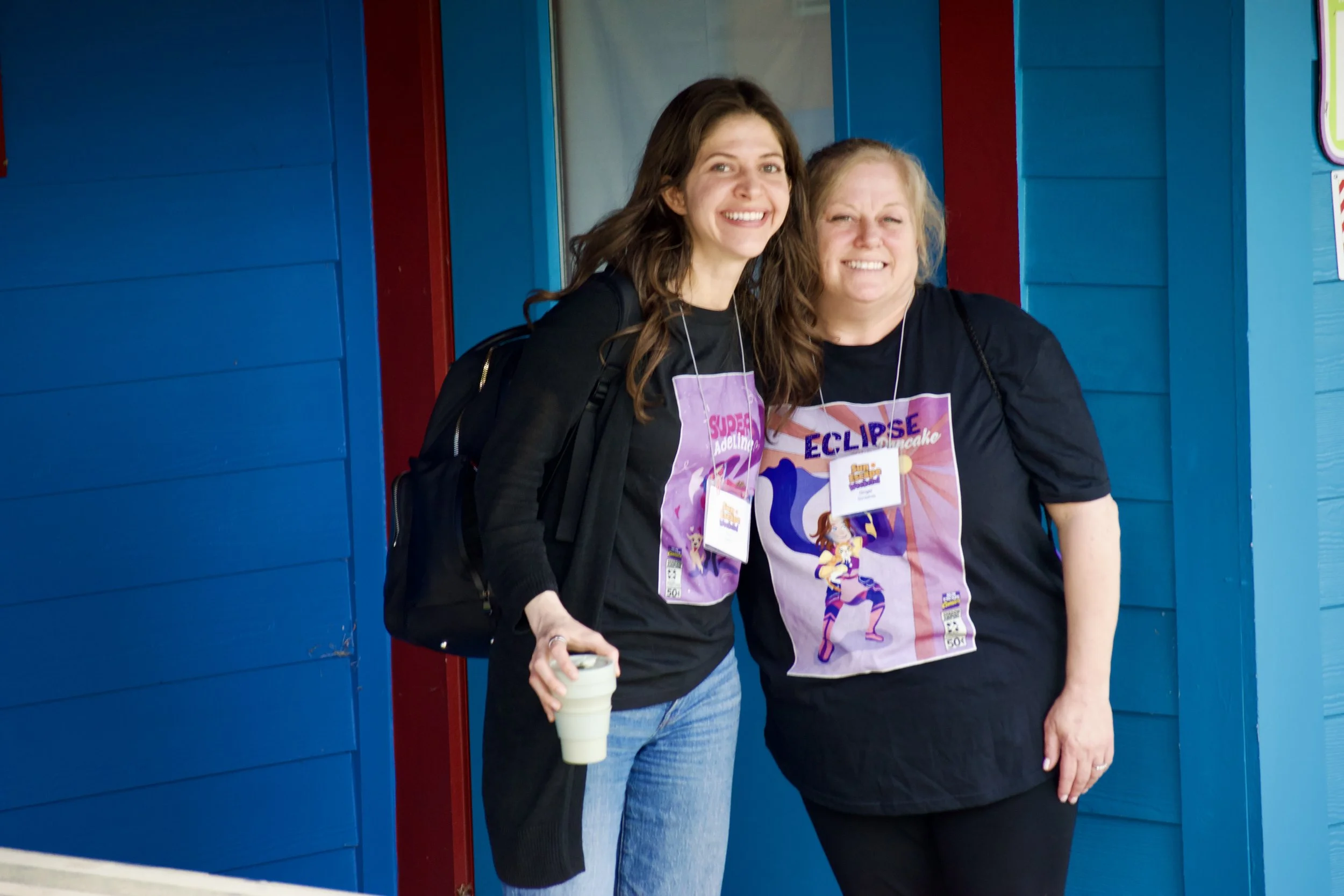 We welcomed 34 primary campers from 32 families on Thursday evening for check-in. Our dedicated volunteers waited outside their assigned cabins along cabin row, proudly wearing official camp t-shirts. However, these were not just any Sun Escape shirts; they featured custom designs illustrating each primary camper as their very own photosensitive hero. This was part of our weekend theme, “Be Heroic.”